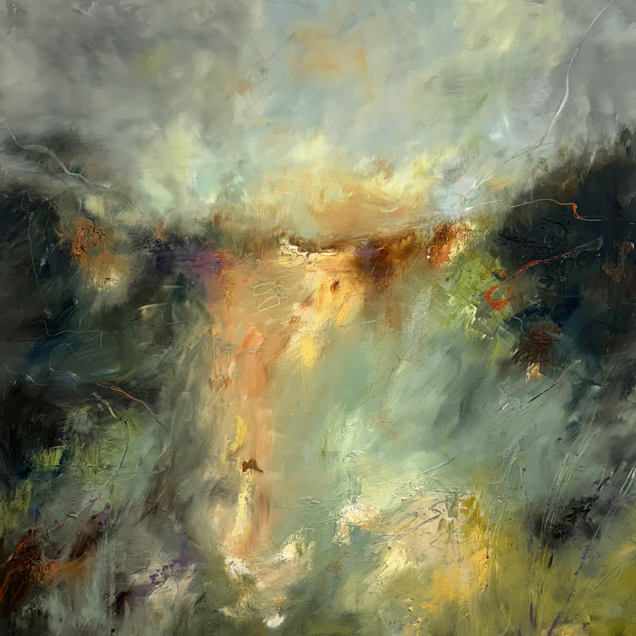 In its natural state Sienna is yellowish brown, and it is called raw sienna, it was one of the first pigments to be used by humans, and is found in many cave paintings. Sienna Morning draws you out into a wild landscape, an engagement with the surface.